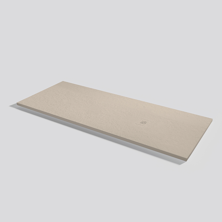 El plato de ducha Alma Slate combina el estilo moderno con el atractivo atemporal. Alma Slate conserva el encanto del efecto piedra, mientras que su minimalista rejilla garantiza un drenaje más eficiente de agua. Personalizable en tamaño y color, el Alma Slate transforma tu baño en un espacio sofisticado y práctico.