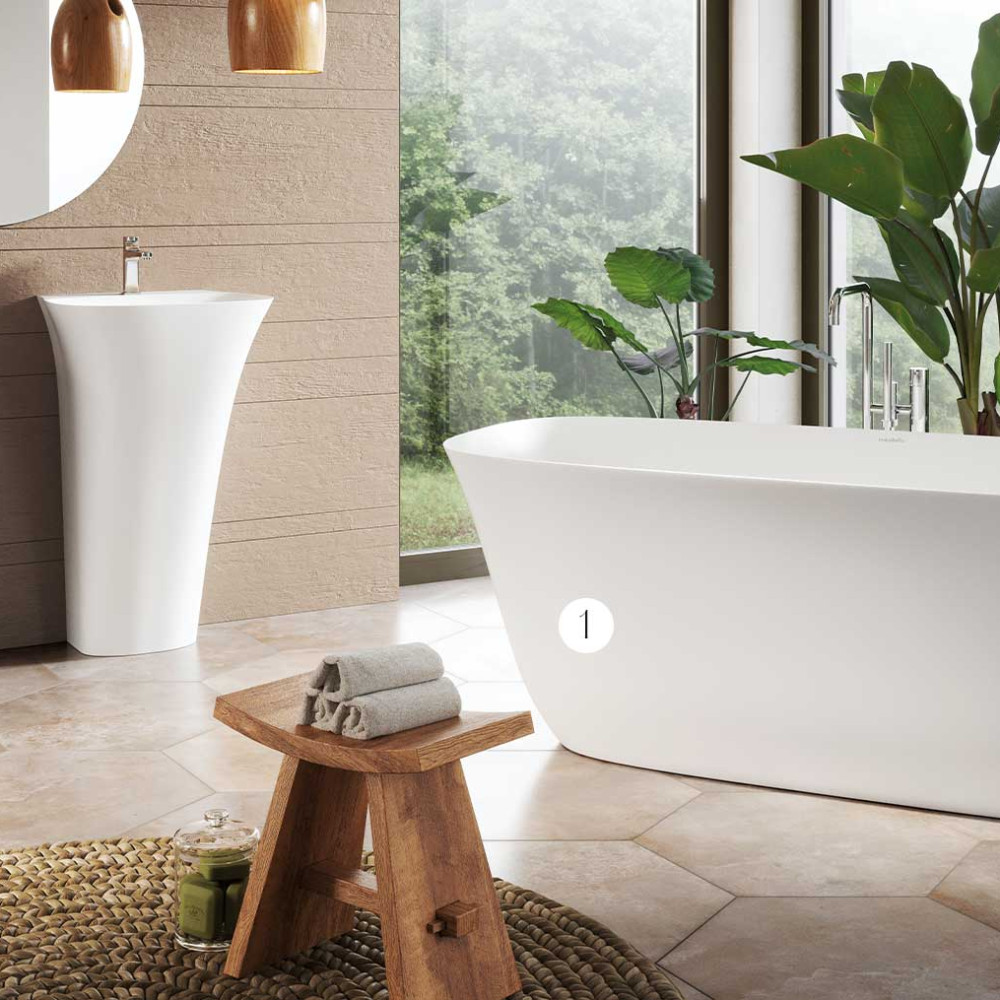 Esplora il lavabo a terra Levi, la scelta migliore per un lavabo a piede che unisce design e praticità. La sua forma elegante e curva consente di integrare la rubinetteria, trasformandolo in una scultura moderna per il tuo bagno. Realizzato in Dolotek®, offre durabilità e facile manutenzione, ideale per spazi contemporanei.